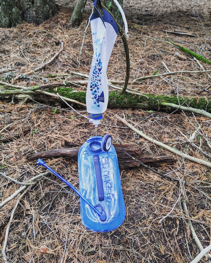 We were able to collect cold, fresh creek water throughout the evening and filtered it using my Katadyn BeFree water filtration system. One of the many great features of this water filtration system is that it allows me to drink directly from the nozzle or refill my water reservoir in a matter of minutes. When it came time to refill my water reservoir, I hung my Katadyn from a sturdy branch and started a fire while it refilled.