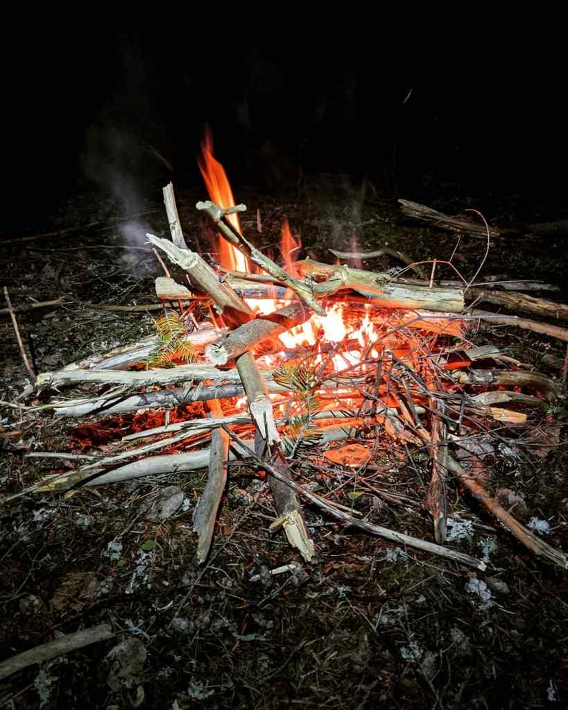 We made it back to our camp around 6:45 PM and were hungry, so we decided to start a fire for warmth and cook dinner. I use the Jetboil Flash which is a fantastic cook system. For dinner I decided on tortilla soup followed by s’mores trail mix made with honey Teddy Grahams, chocolate chips, and mini marshmallows. It was a rewarding treat for the end of the day.