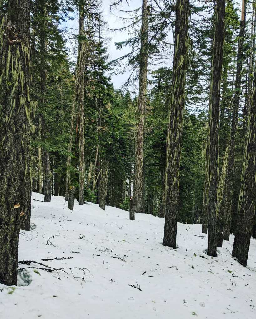 I do not recommend hiking along Mount Kit Carson Loop Road during the Winter season, as it is heavily trafficked with snowmobiles and downhill skiers. If you find yourself in trouble, however, it is a great area to be. The Rangers and other locals patrol this area and will stop for anyone in need of help. Paullena and I found ourselves in need of help this past winter and we were thankful for a local man who helped us on his snowmobile. He drove us to the CCC Cabin, then he and the Ranger got us down the mountain and safely to my car.
